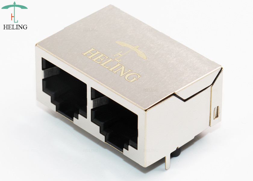 1 x 2 Ports RJ45 Lan Jack , Brass Shielded, Right Angle, THT Type Without LED
